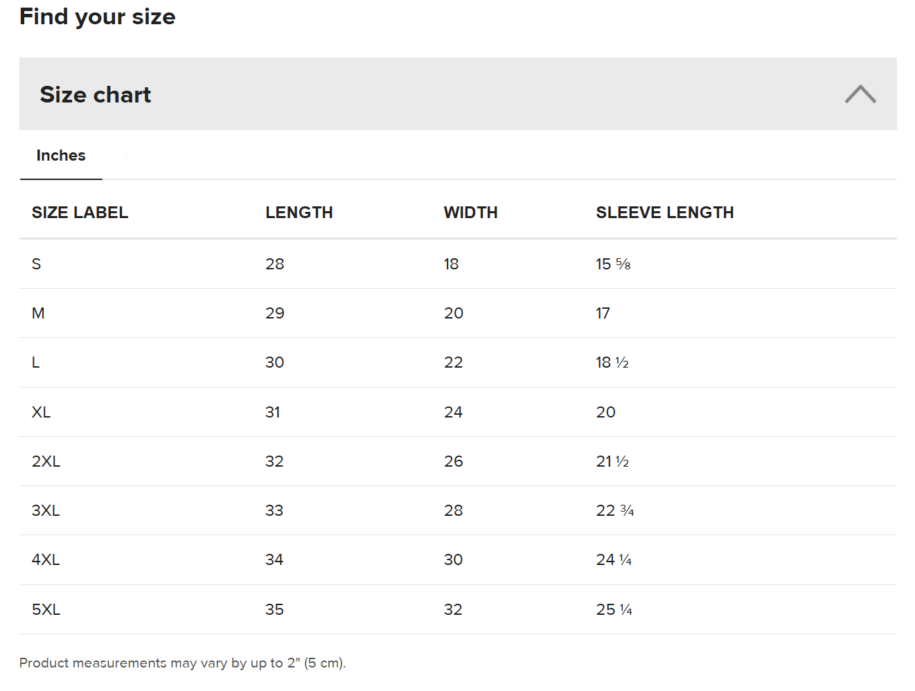 | 5XL | 35 | 32 | 25 ¼ |